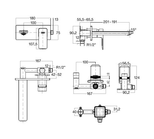 Acacia Evolution Wall Mount Basin Mixer Model No.: FFAS1304-102500BF0/BASIN FAUCETS/Taps & Faucets