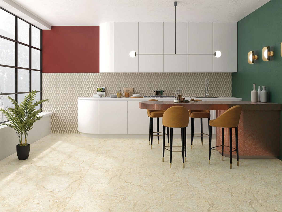 Vitrified tiles are high-performance flooring solutions made from a mixture of clay, silica, quartz, and feldspar that are fired at extremely high temperatures. This process creates a dense, non-porous surface that is highly resistant to water, stains, scratches, and wear. Vitrified tiles come in a variety of designs, finishes, and sizes, making them suitable for both residential and commercial spaces. They offer excellent durability, easy maintenance, and aesthetic appeal, often mimicking natural stone, wood, or other materials. Their resistance to moisture and high strength makes them ideal for areas with heavy foot traffic, like kitchens, bathrooms, and living rooms.