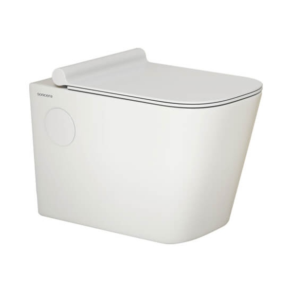 The SONCERA Wall Hung Toilet Closet is a modern and space-saving bathroom solution, featuring a sleek design with dimensions of 550 x 350 x 360mm. This wall-mounted fixture is crafted from high-quality ceramic, ensuring durability and ease of cleaning. It includes a concealed cistern, which contributes to a clean and minimalist aesthetic. The wall hung design allows for easier cleaning of the floor space beneath the toilet and is compatible with designed wall hung systems. The SONCERA Wall Hung Toilet Closet is equipped with a water-saving flush system, making it an economical and environmentally friendly choice. Its installation process is tailored for wall mounting, providing a stylish and functional addition to contemporary bathrooms.